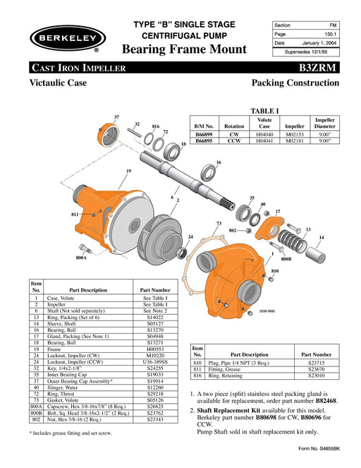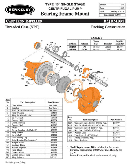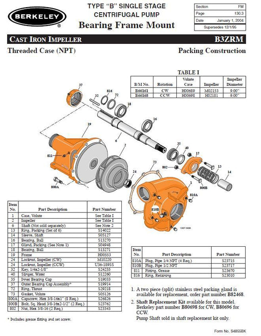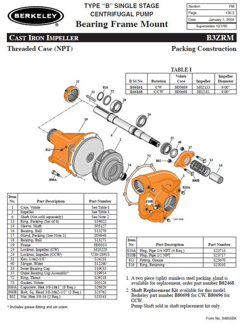 B66168 B3ZRM Berkeley pump CCW with threaded packing