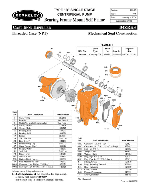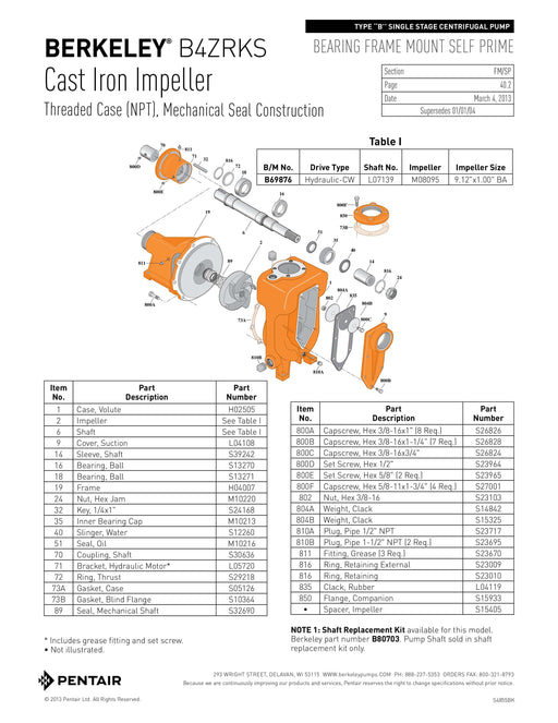 Please call me to schedule LTL freight It's the best way to ensure safe and efficient delivery The B4ZRKS B69880 is a CW, Mechanical Seal style pum...